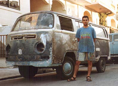 Paint stripping stage has just been finished. Damage to the front panel and lower front door had been coated in hard metal whilst other damage can just been seen on the rear panel.