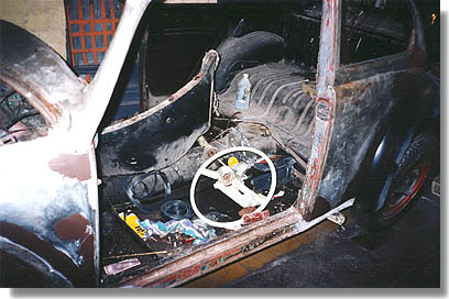 restoration of this '61 Bug gets under way. Note stripped interior,