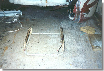 Front seat squab stripped prior to restoration. Note the bonnet in the background before it was stripped to bare metal.