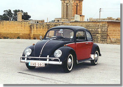 Beetle VWB 061 in its final red and black colour scheme. Here the car is seen at the start of the Millenium Run organised by the Old Motors Club of Malta, days before the start of the year 2000.