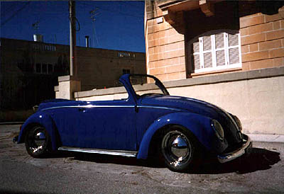 Another side shot of the Blue Speedster. Again, note the dechromed bonnet, the Porsche 356 pattern wheels as well as the shaved front indicator clusters. Front bumper does need straightening.