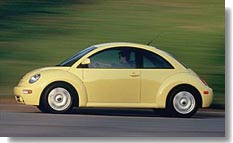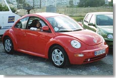 The latest addition to the Beetle family is a front-engined, front wheel driven car whereas the older concept was powered by an engine in the rear which also drove through the rear wheels. The original was cooled by air whilst the New Beetle is liquid cooled and is available in both petrol and diesel variants. The petrol engine, a 2.0 litre unit, produces 115 bhp in comparison to the lowly 30 bhp generated by its ancestor. The diesel engine, a 1.9 L Turbo Diesel, is also very powerful and performance in both instances is very good with a maximum speed of 185 km/hr and 171 km/hr respectively. Consumption is also very good and easily meets current exhaust emission standards. The interior is spacious, especially at the front whilst a lifting tailgate gives access to the luggage area which is somewhat restricted. Just as in the original car, this can be extended when required by folding down the rear seat back, the only difference being that access to this luggage compartment was very awkward in the original concept because there was no lifting tailgate. The passenger compartment in the New Beetle carries some of the characteristics of the older car which will surely bring back fond memories to many people. These include a large round instrument dial, a flower vase and grab straps for rear-seat passengers. Optional extras available on this model will, however, remind passengers that the New Beetle is up to date with other cars, notwithstanding its strong resemblance to the older version. These include air-conditioning, leather trimmed interior, CD changer and electric sunroof amongst others whilst a radio with six speakers is a standard item.